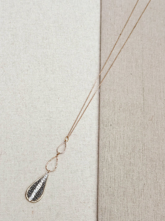 Gracie Rose Designs - Gold & Silver Rhinestone Textured Pendant Long Necklace