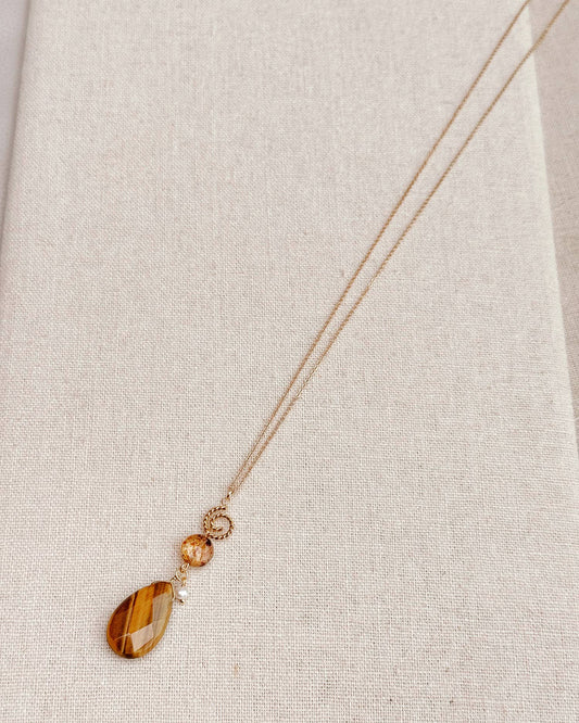 Gracie Rose Designs - Tiger’s Eye Freshwater Pearl Glass Necklace