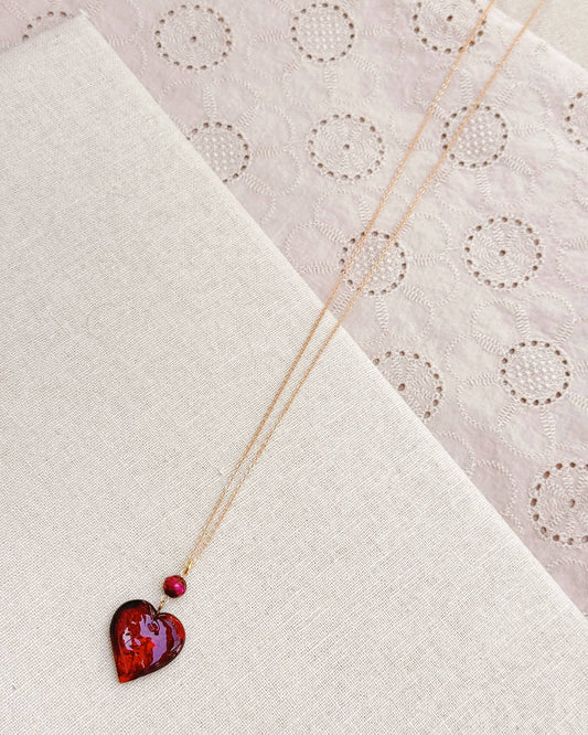 Gracie Rose Designs - Medium Murano Glass Ruby Red Heart Necklace with Gold Chain