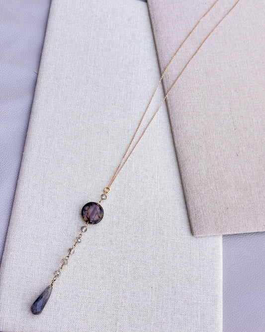 Gracie Rose Designs - Matte Gold Crackle Agate & Crystal Drop Necklace