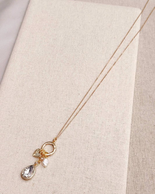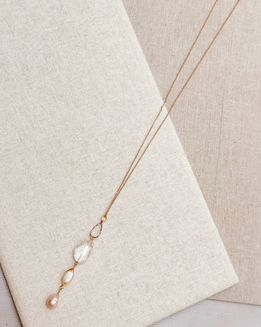Gracie Rose Designs - Crystal Quartz & Freshwater Pink Pearl Drop Necklace