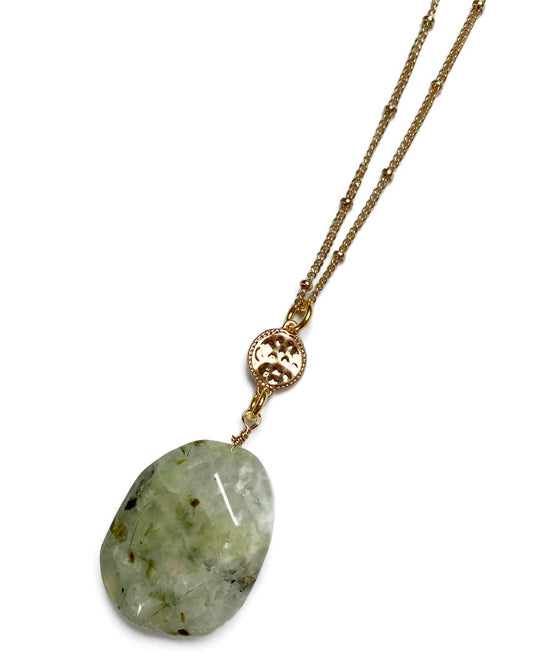 Gracie Rose Designs - Gold Fancy Chain Large Green Prehnite Pendant Necklace