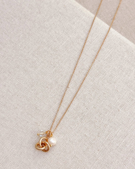 Gracie Rose Designs - Freshwater Pearl Knot Gold Necklace with Crystal Accent
