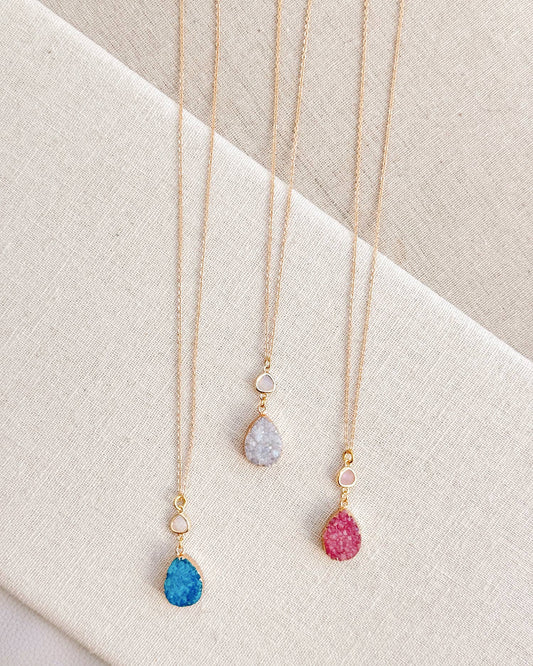 Gracie Rose Designs - Matte Gold Teardrop Druzy Quartz Pendant Long Necklace