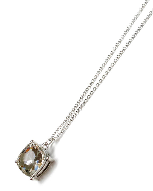 Gracie Rose Designs - Rhodium Cushion Cut Clear Crystal Charm Necklace