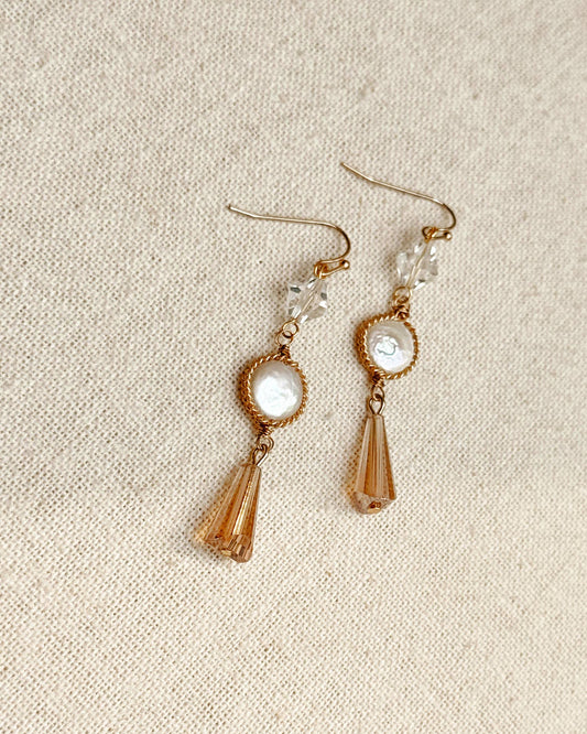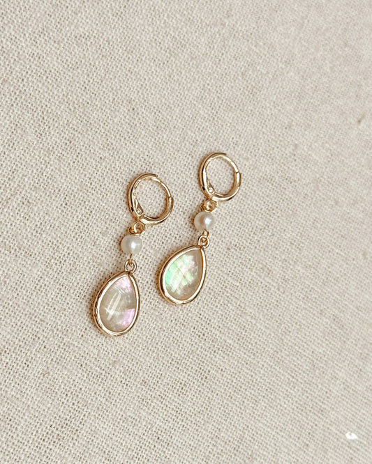 Gracie Rose Designs - Champagne Shell Tear Drop Gold Earrings