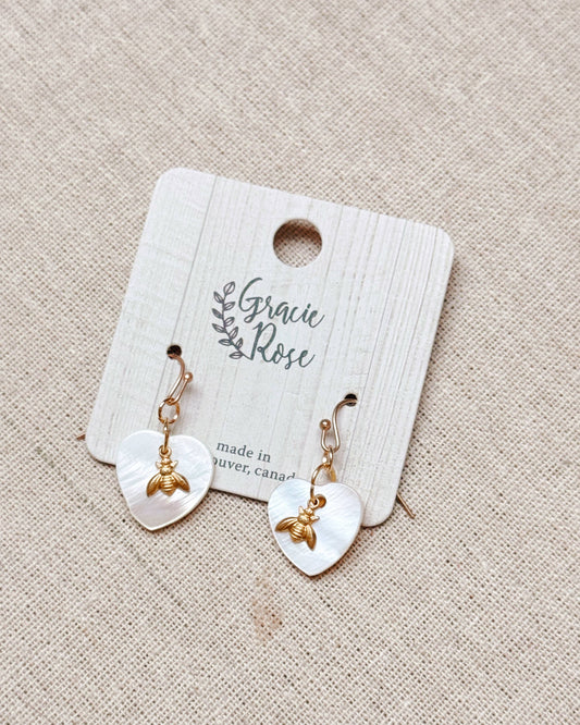 Gracie Rose Designs - Mother of Pearl Heart Bee Earrings