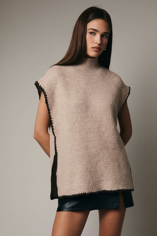 Sunday Edition Cream Asymetric Mockneck Sweater
