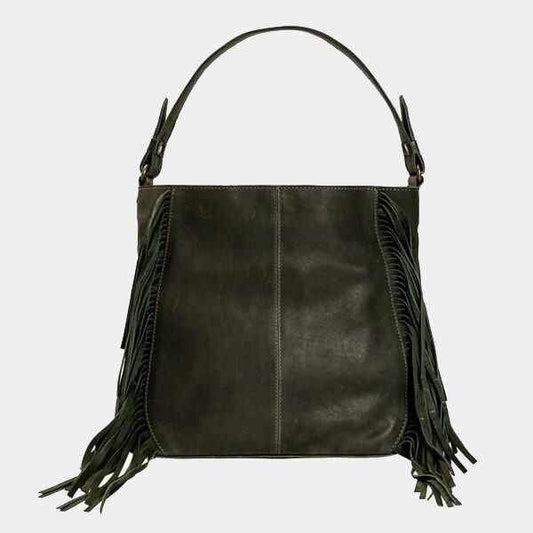Risa Leather Fringe Chloe Hunter Green