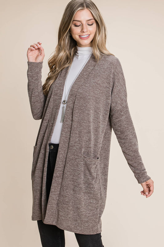 BOMBOM - SOFT KNIT CARDIGAN WITH POCKETS MOCHA