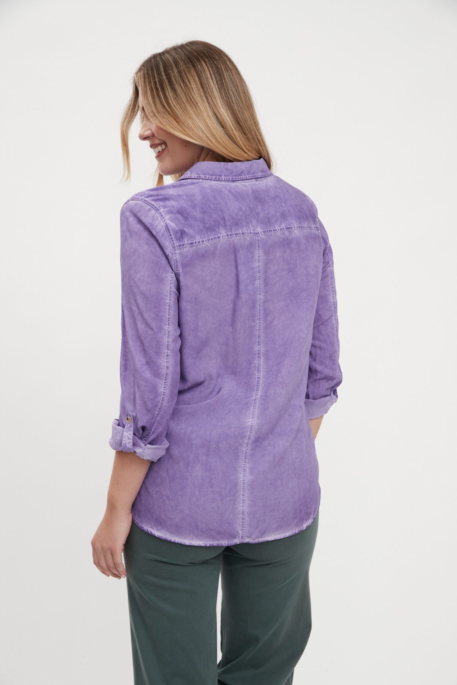 French Dressing Long Sleeve Pigment Dye Shirt Wild Pansy
