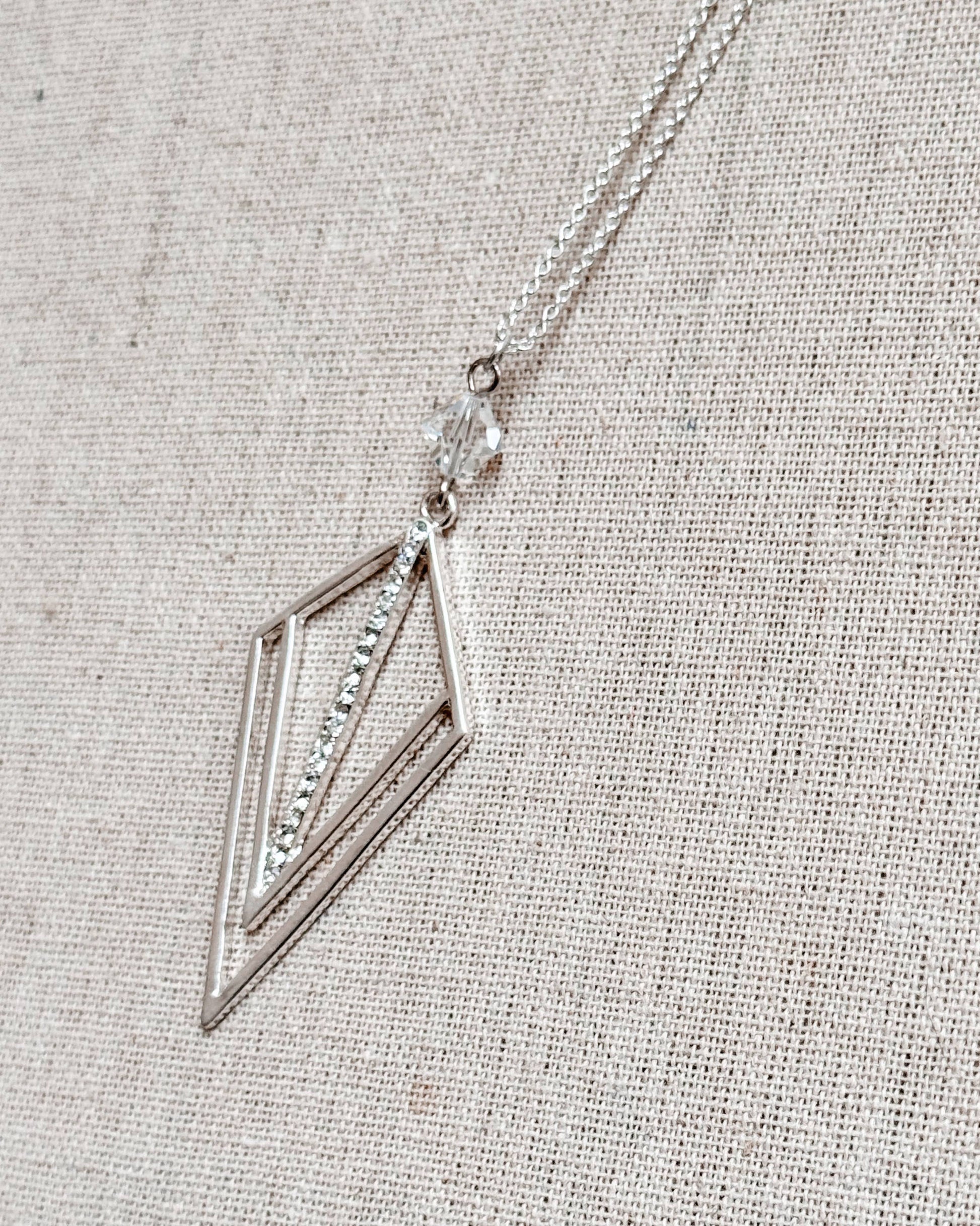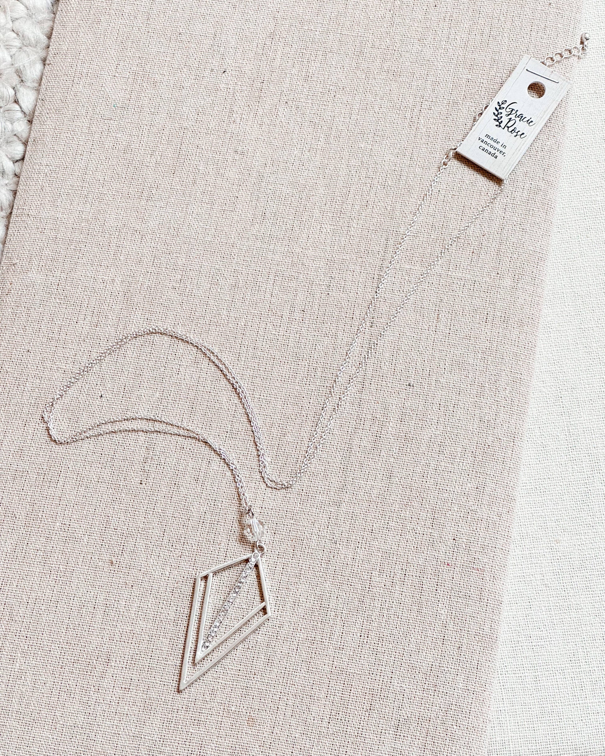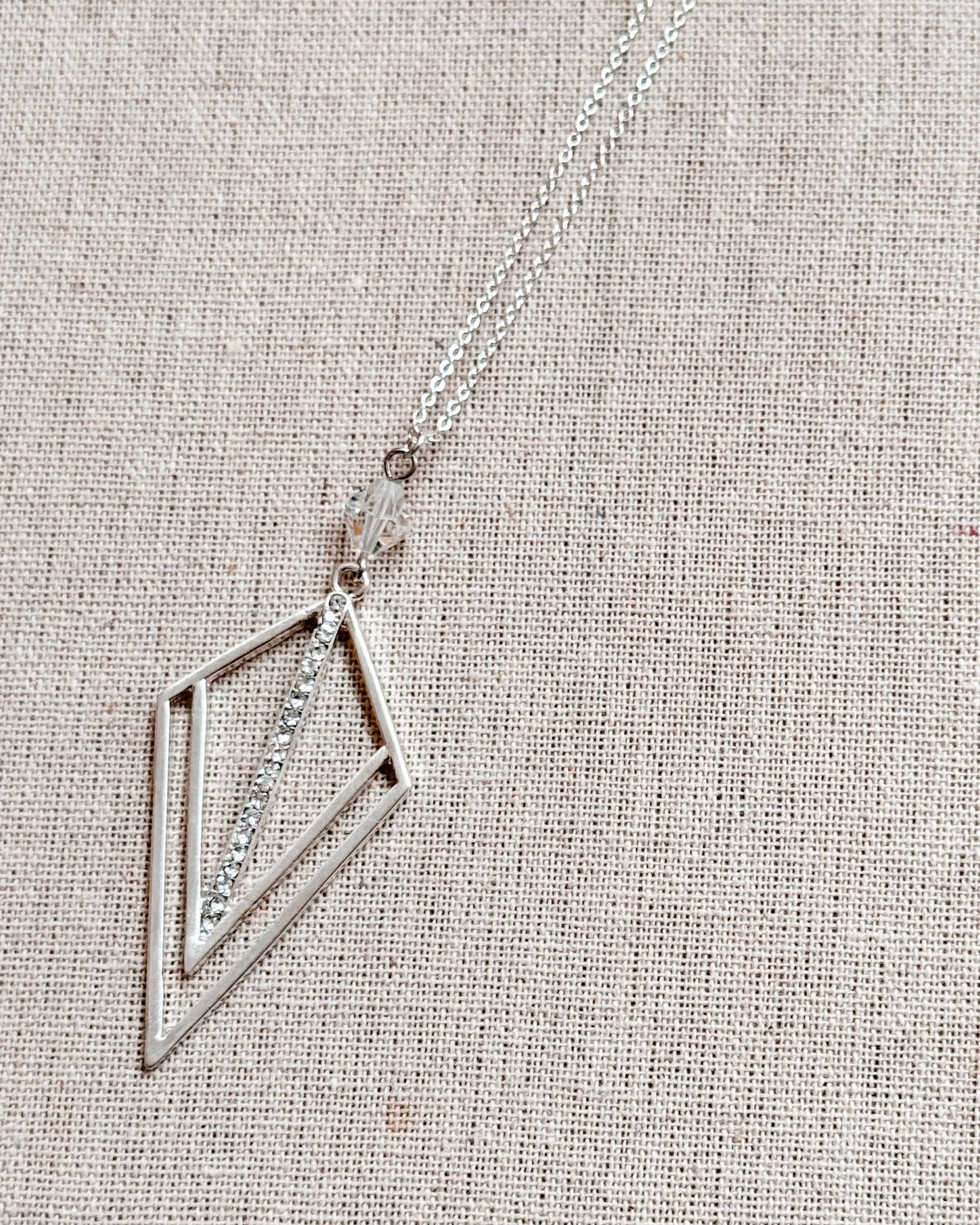 Gracie Rose Designs - Matte Silver Rhinestone Geometric Pendant Long Necklace