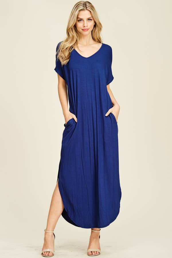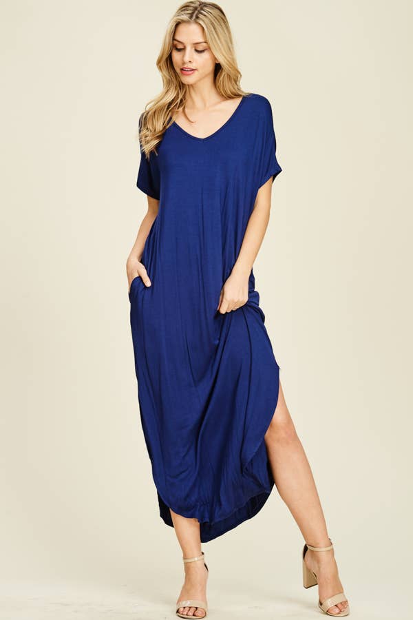The best selling solid Maxi dress V-neckline Soft and lightweight rayon spandex fabric 95% Rayon 5% Spandex Model is wearing size S and is 5'10" MADE in USA