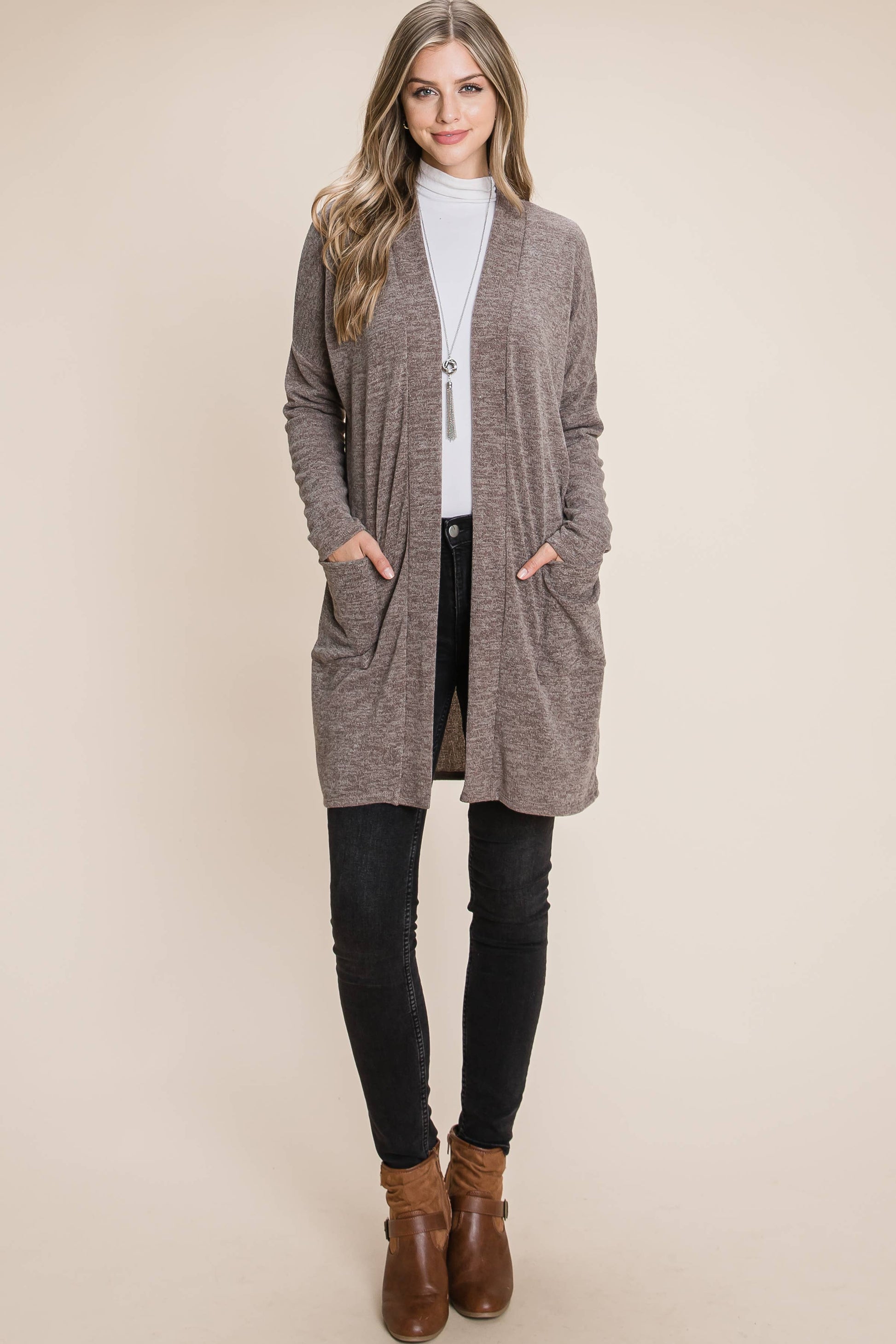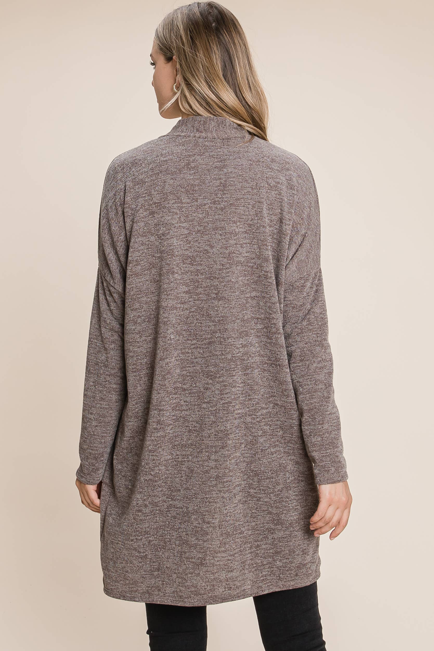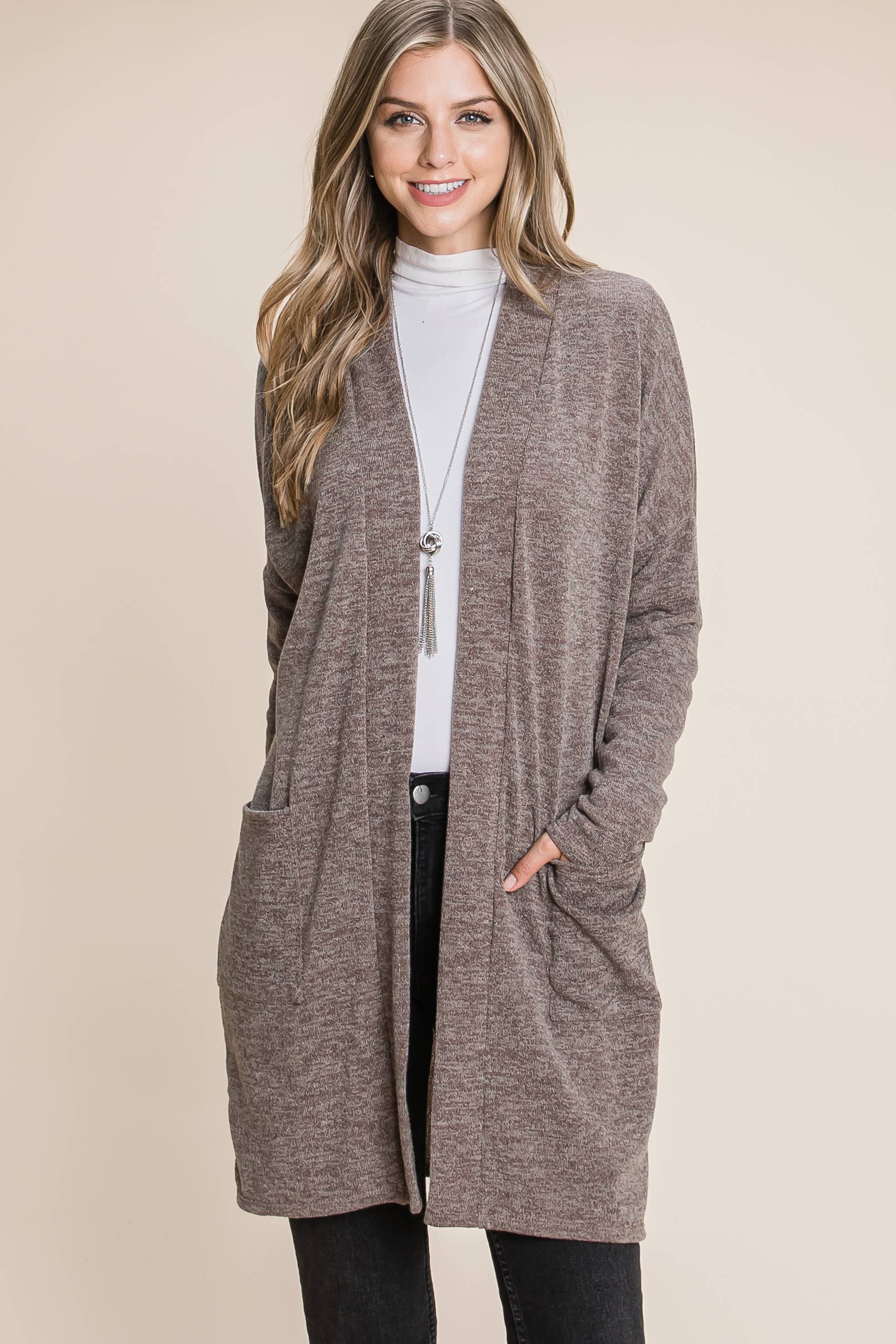 BOMBOM - SOFT KNIT CARDIGAN WITH POCKETS MOCHA