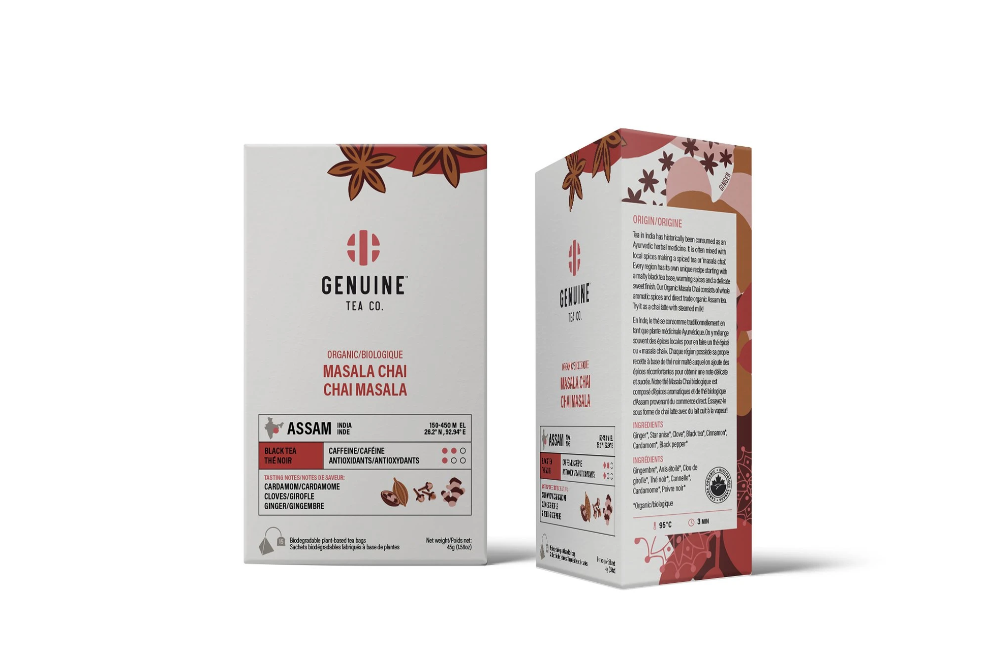 Genuine Tea - Pyramid Tea Bags - Organic Masala Chai Black Tea