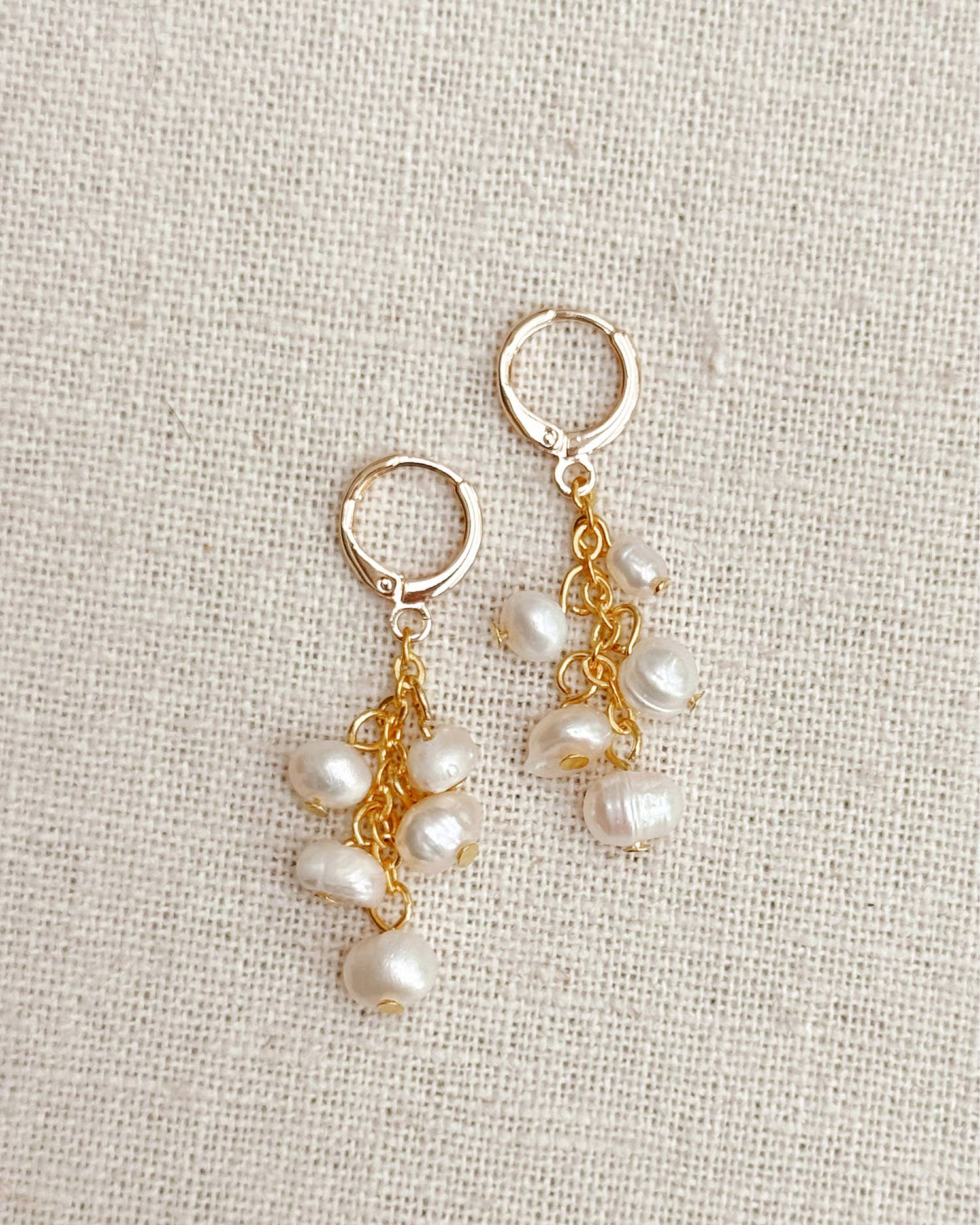 Gracie Rose Designs - Freshwater Pearl Tassel Drop Gold Huggie Earrings