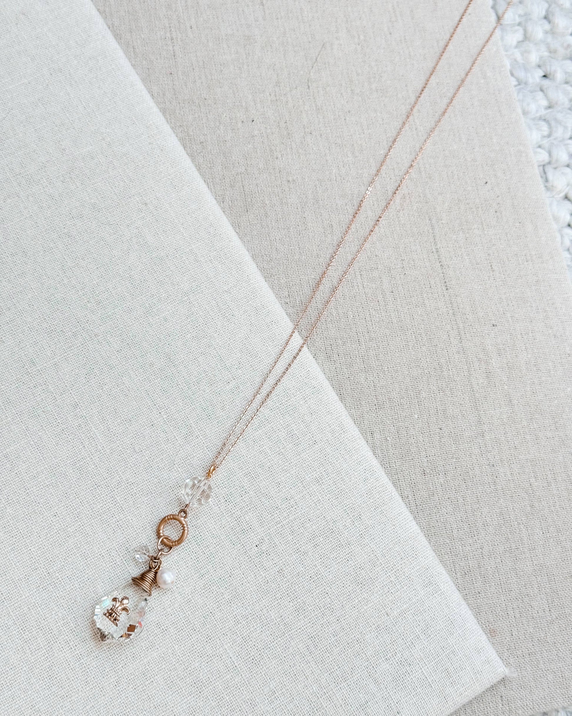 Gracie Rose Designs - Gold & Crystal Freshwater Pearl Fleur-de-Lis Long Necklace