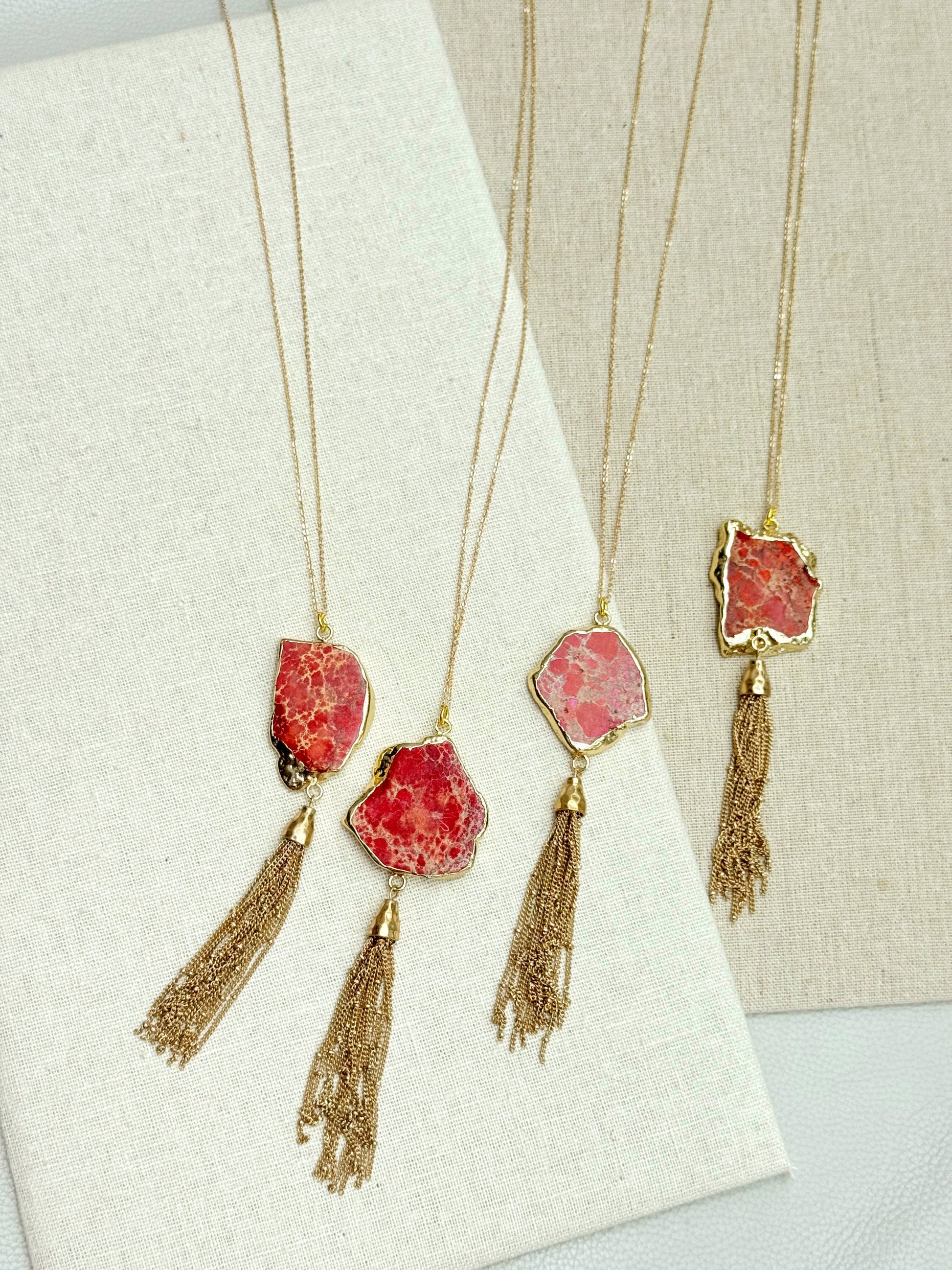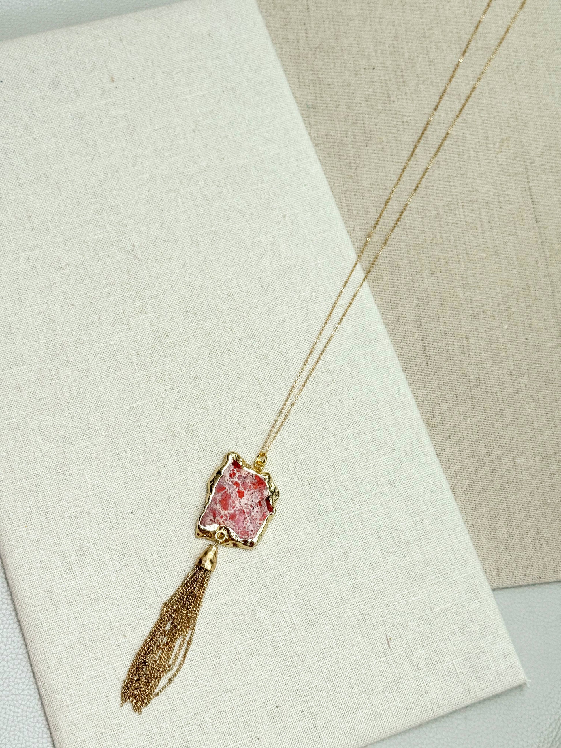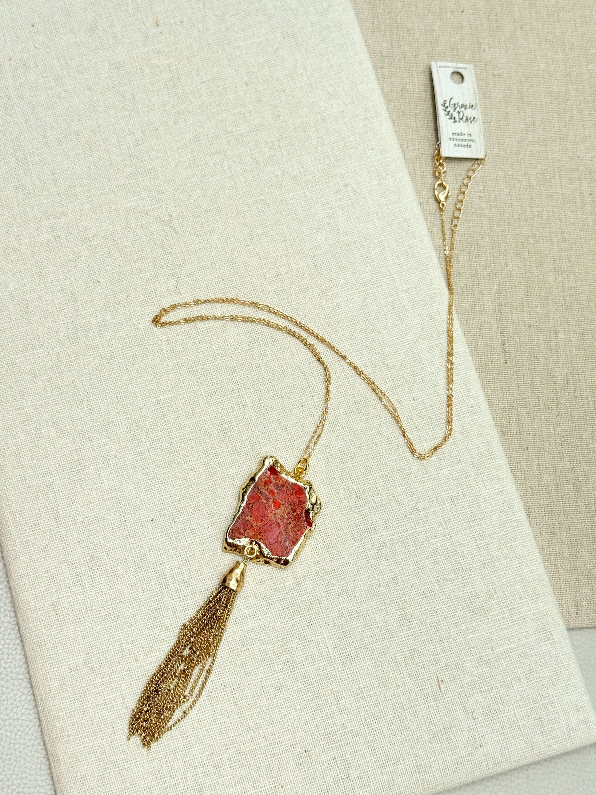 Gracie Rose Designs - One of a Kind Gold Red Sea Jasper Pendant Tassel Necklace