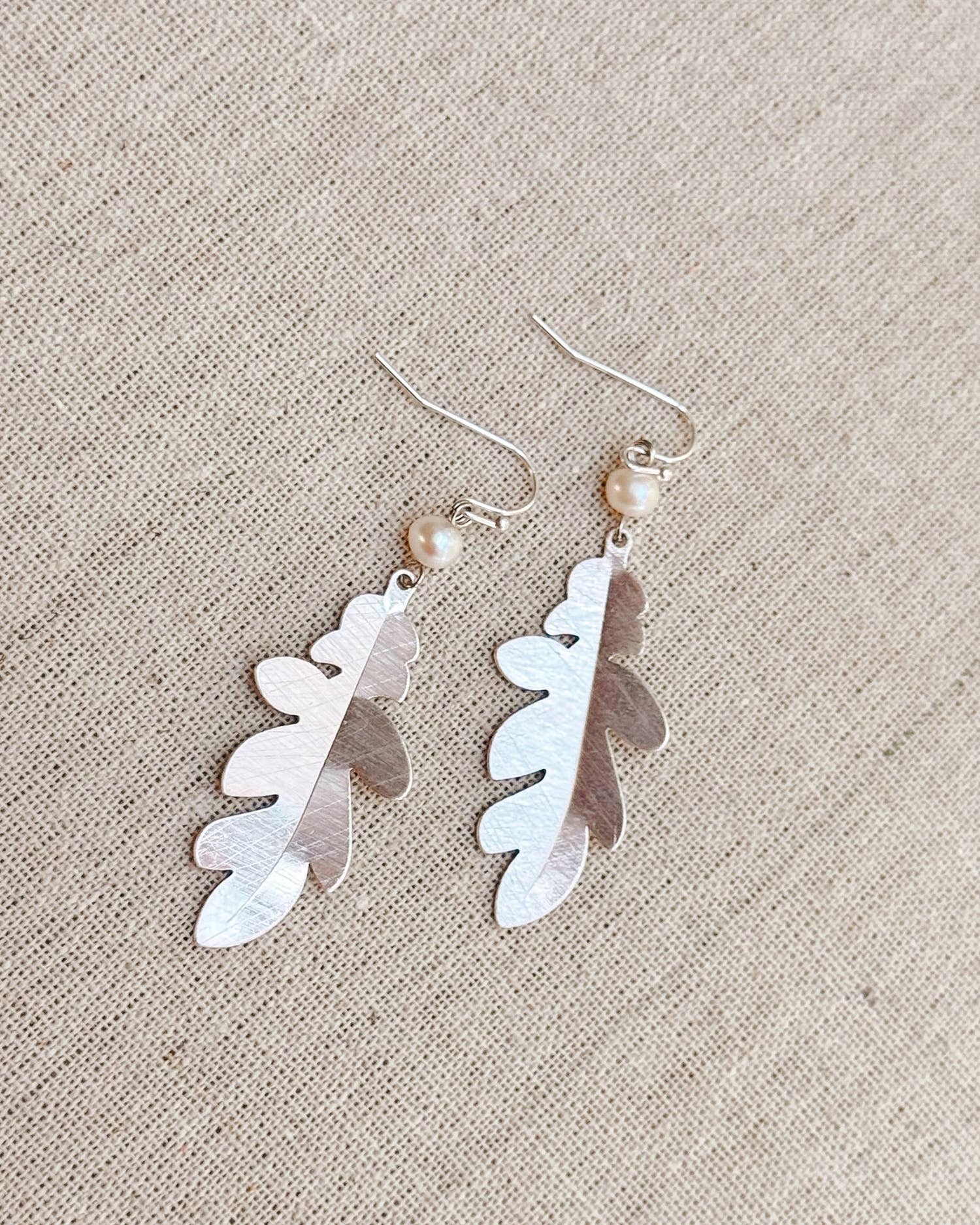 Gracie Rose Designs - Pearl and Oak Leaf Drop Earrings – Mixed Metal