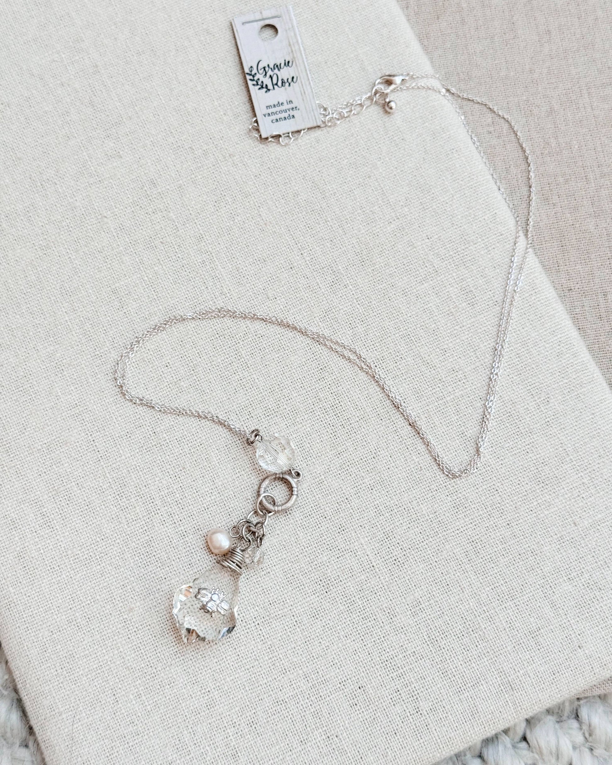 Gracie Rose Designs - Silver & Crystal Freshwater Pearl Bumblebee Long Necklace