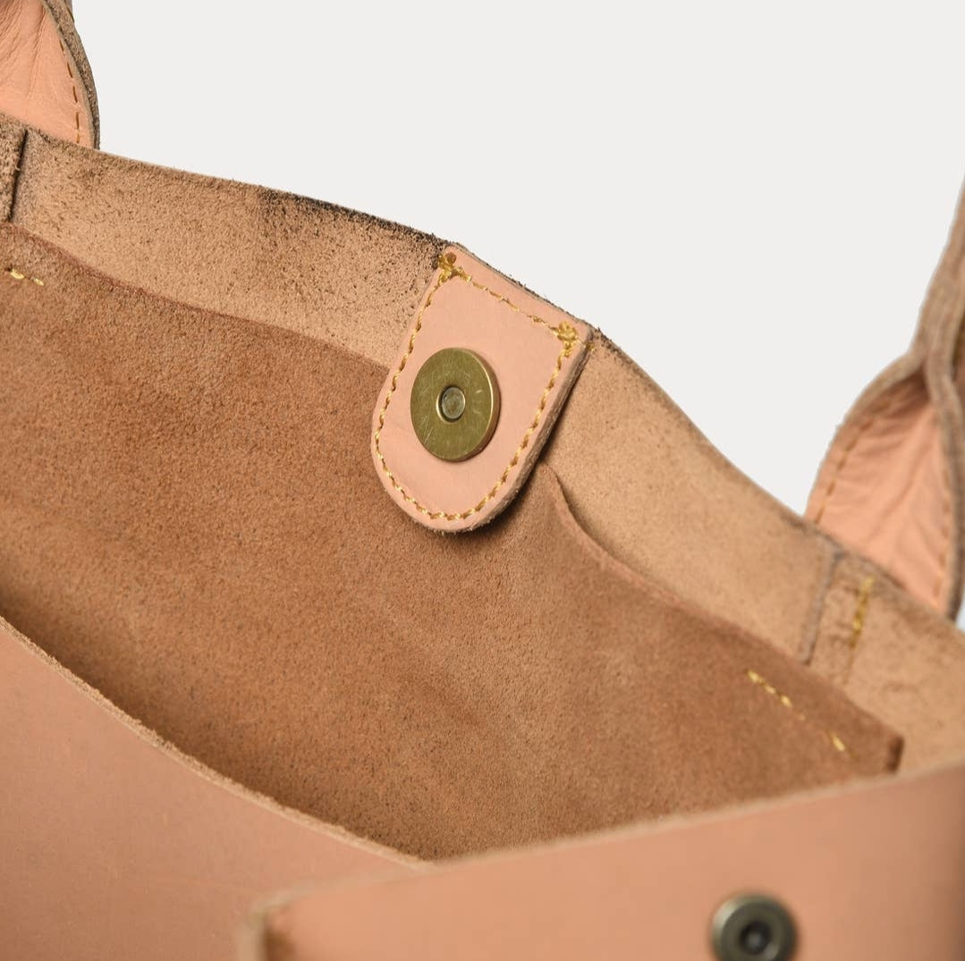 Classic simple medium tote with comfortable exterior pockets to keep things handy. Inside, one generous pocket. Naked bag with great space. Comfortable flat shoulder strap. Fits everything! Complementary dust bag.