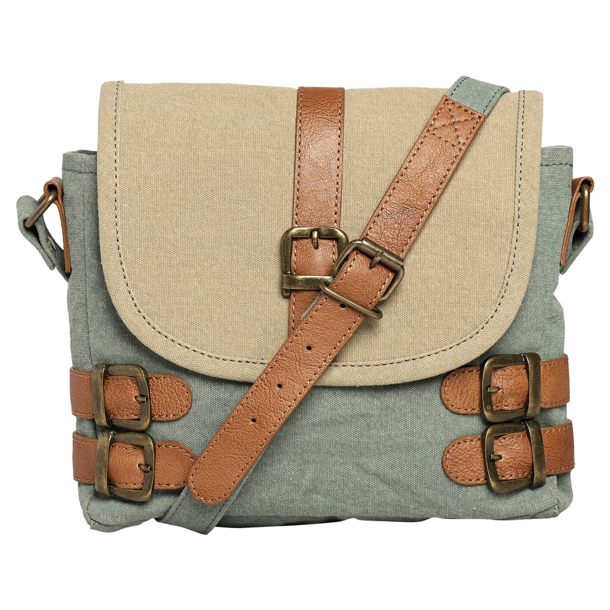 Mona B. - Buckled Up Agean Canvas Crossbody Bag, Original Leather