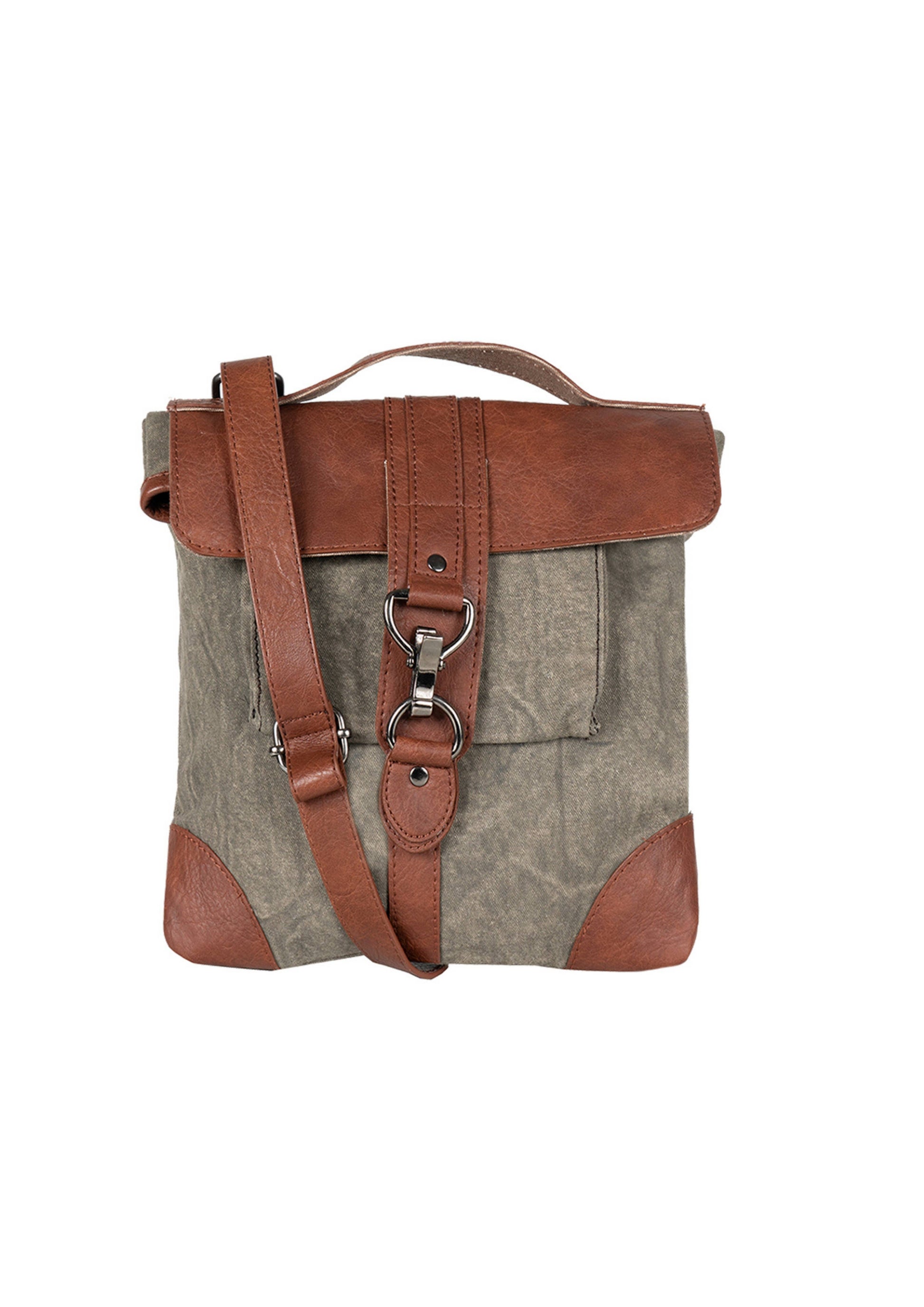 Short Description: This fun and fashionable crossbody is the perfect way to carry everything you need and then some! Load it up, and bring it everywhere. Made from durable re-milled and up-cycled military tarps & tents used by the army, covering trucks as tarps and providing shelter as tents, this textile is given new life. The Mona B canvas collection is part of a global initiative committed to up-cycling, re-milling, and zero-waste manufacturing.