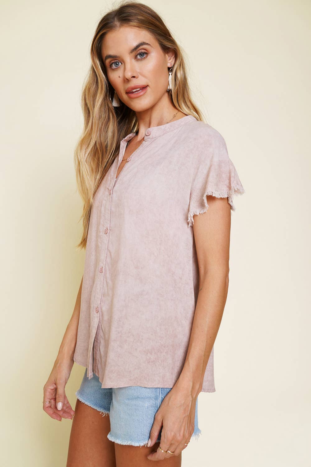Made from a light wash fabric, this blouse offers a versatile and effortless style.