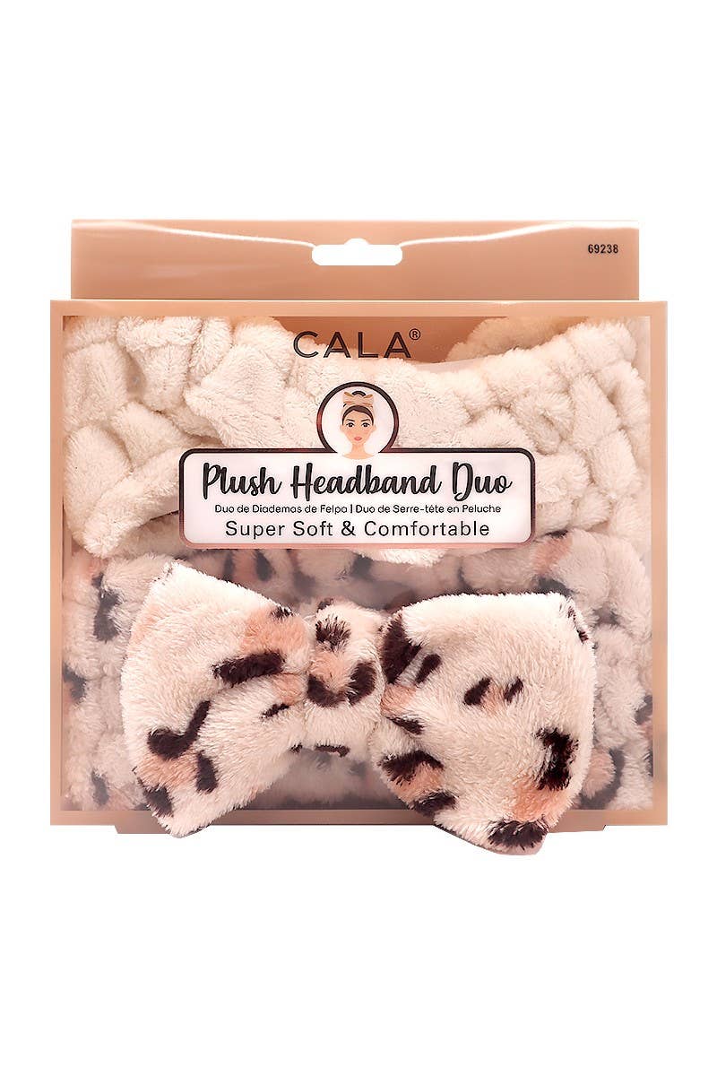 CALA Plush Headband Duo Leopard and Beige