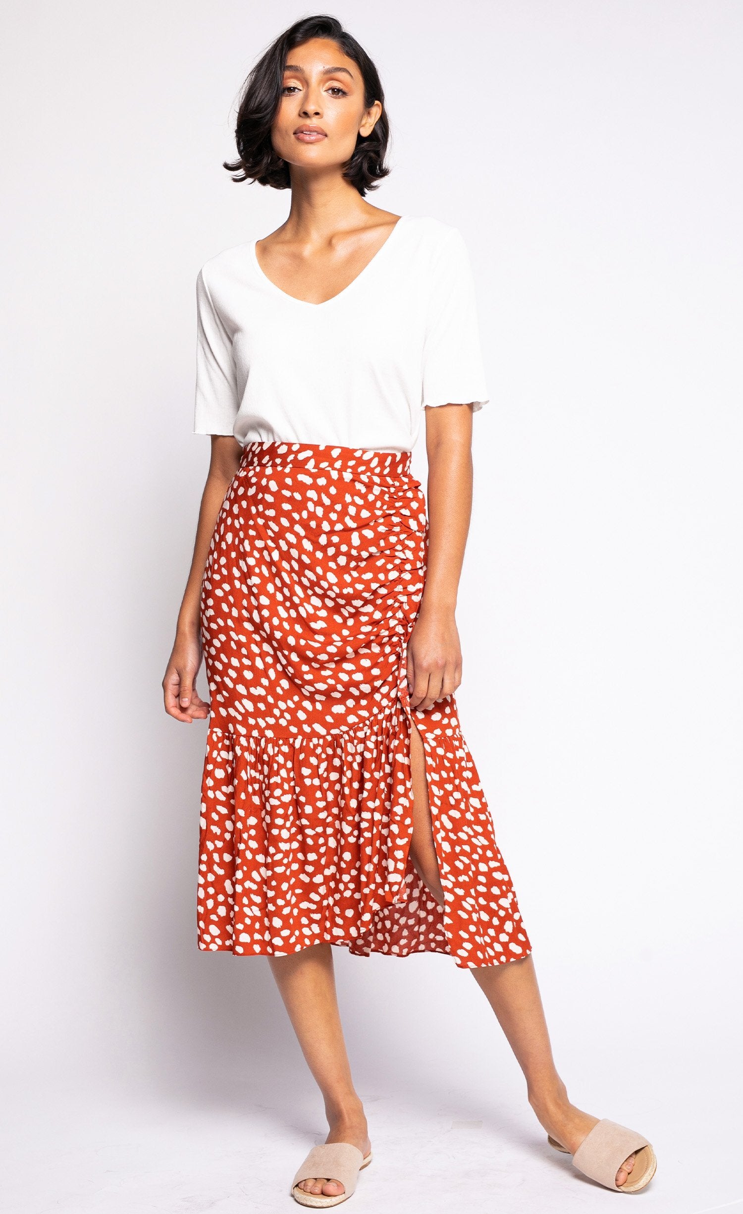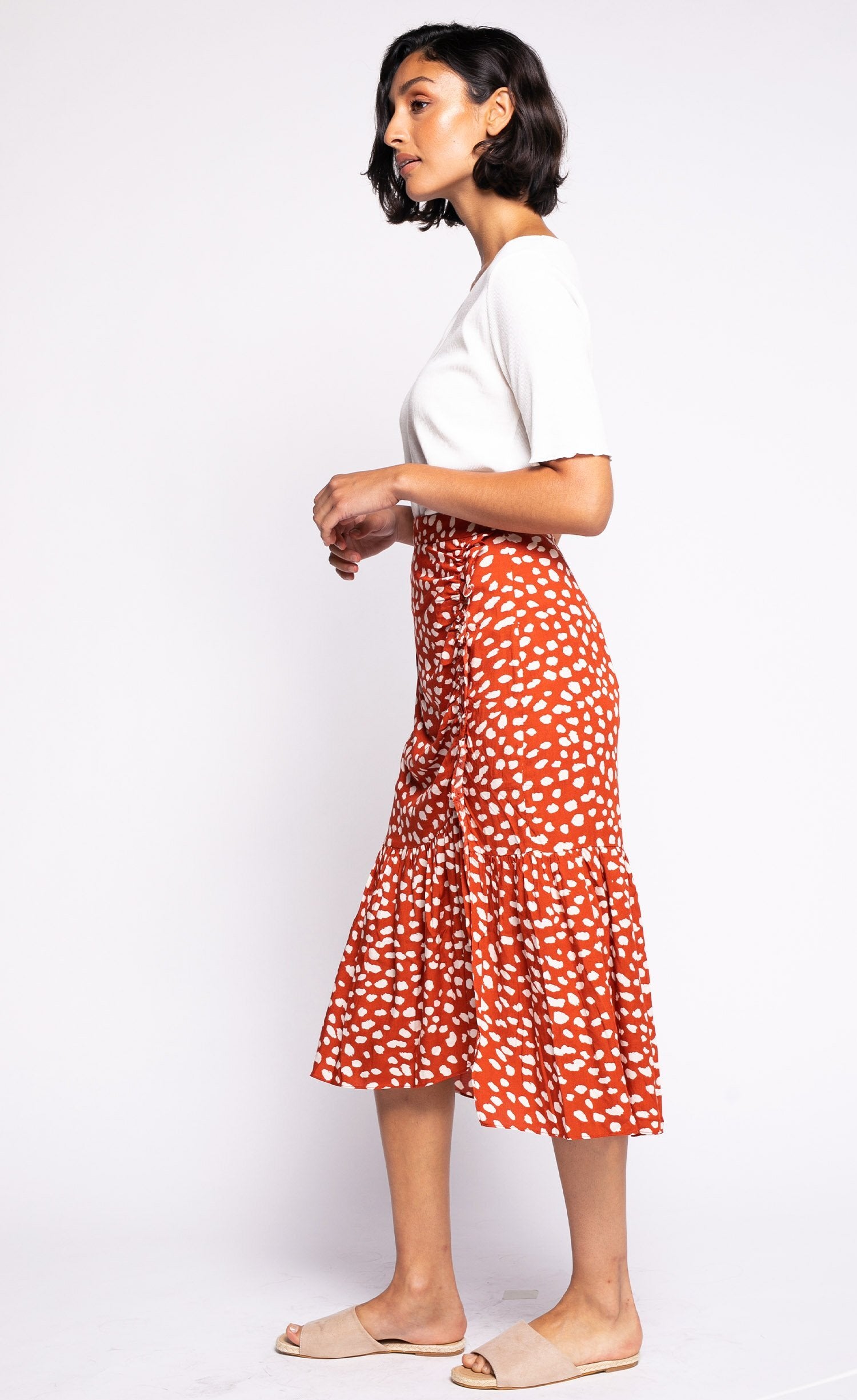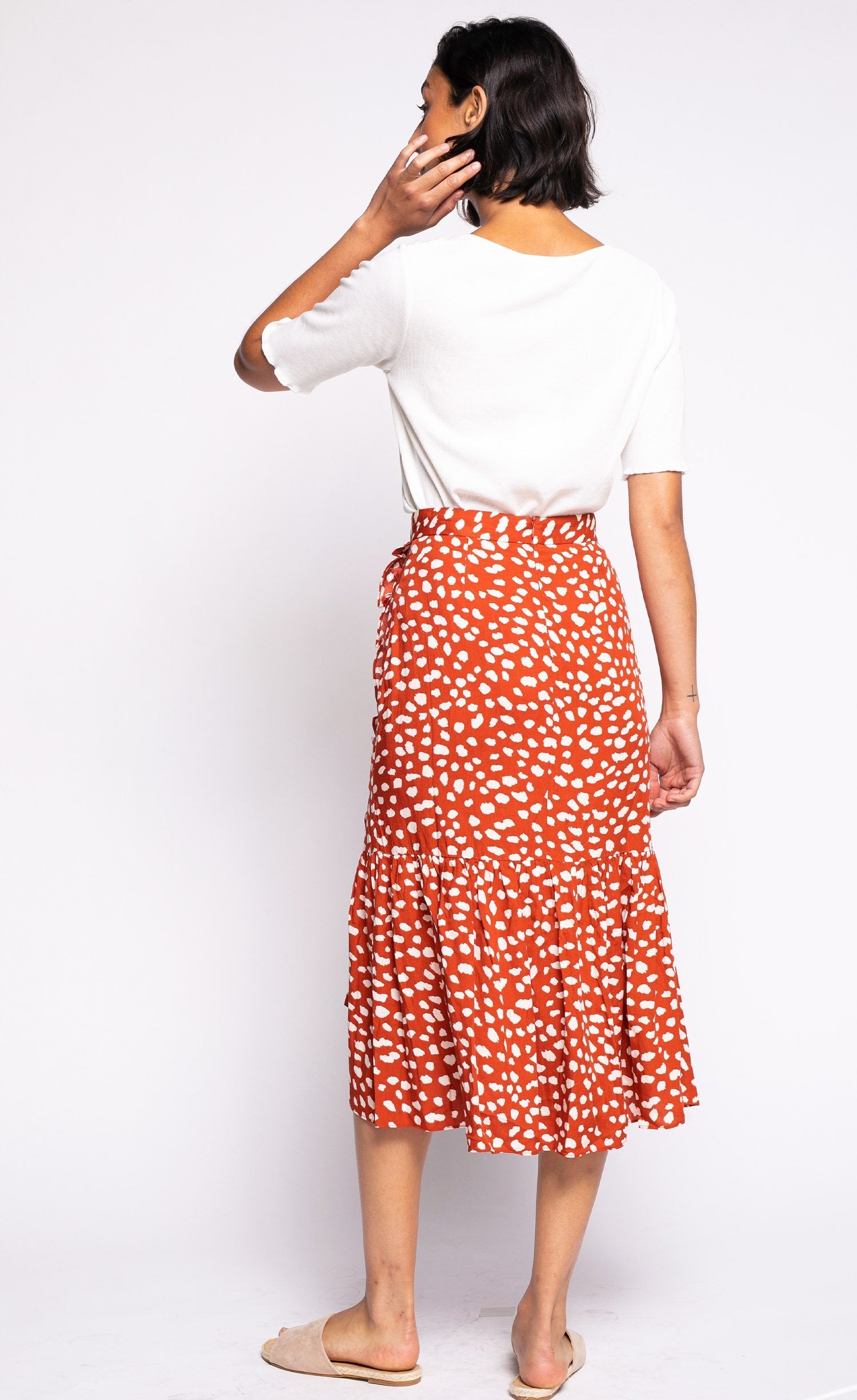 Classic lines and modern patterns come together in this lovely summer skirt. The wraparound style keeps things light and simple for all day comfort and cool looks.