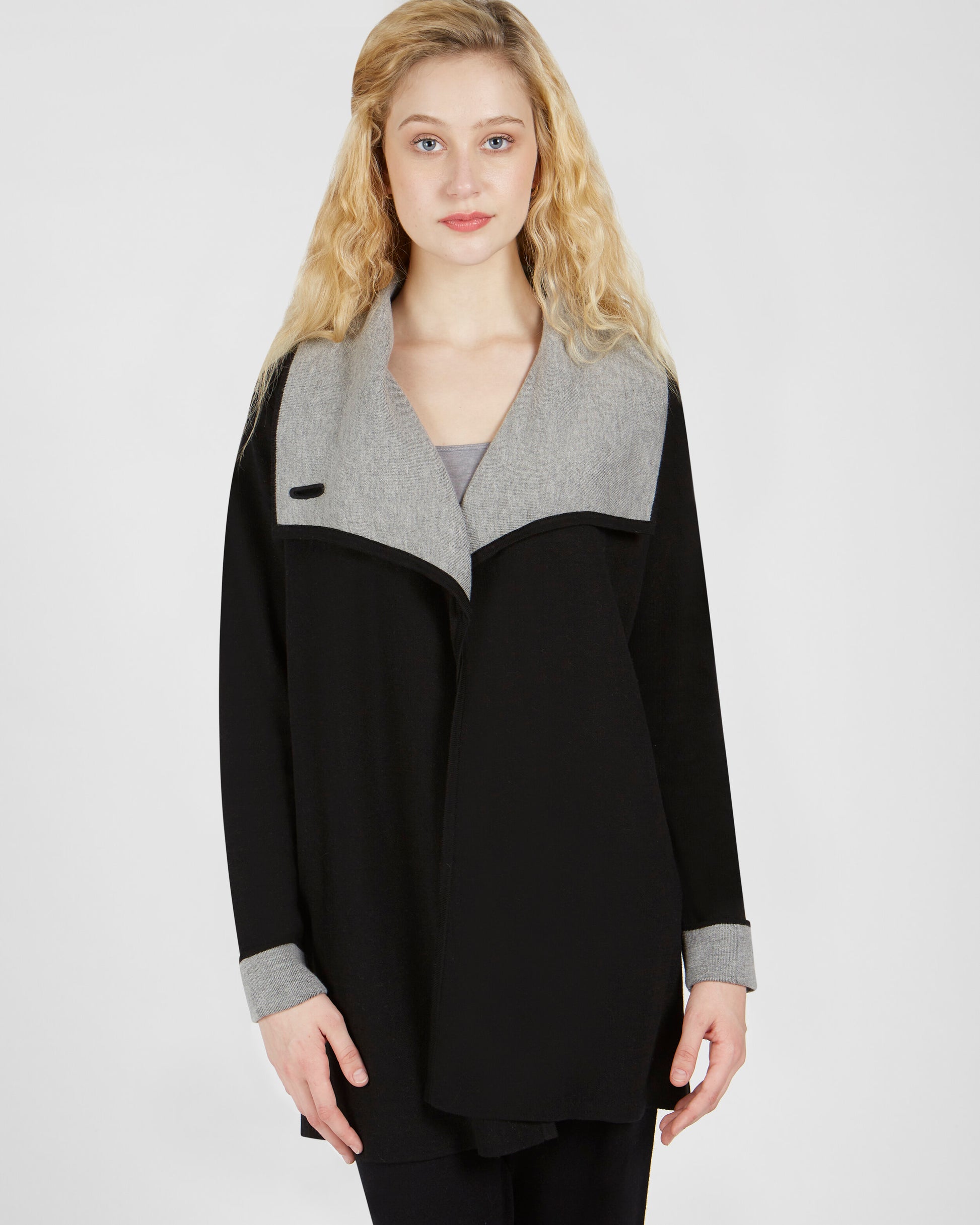 Super Soft Sweater Coat from Renuar is a great piece for the Fall season we have the Black and Grey Variation, the cream is to show multiple angles