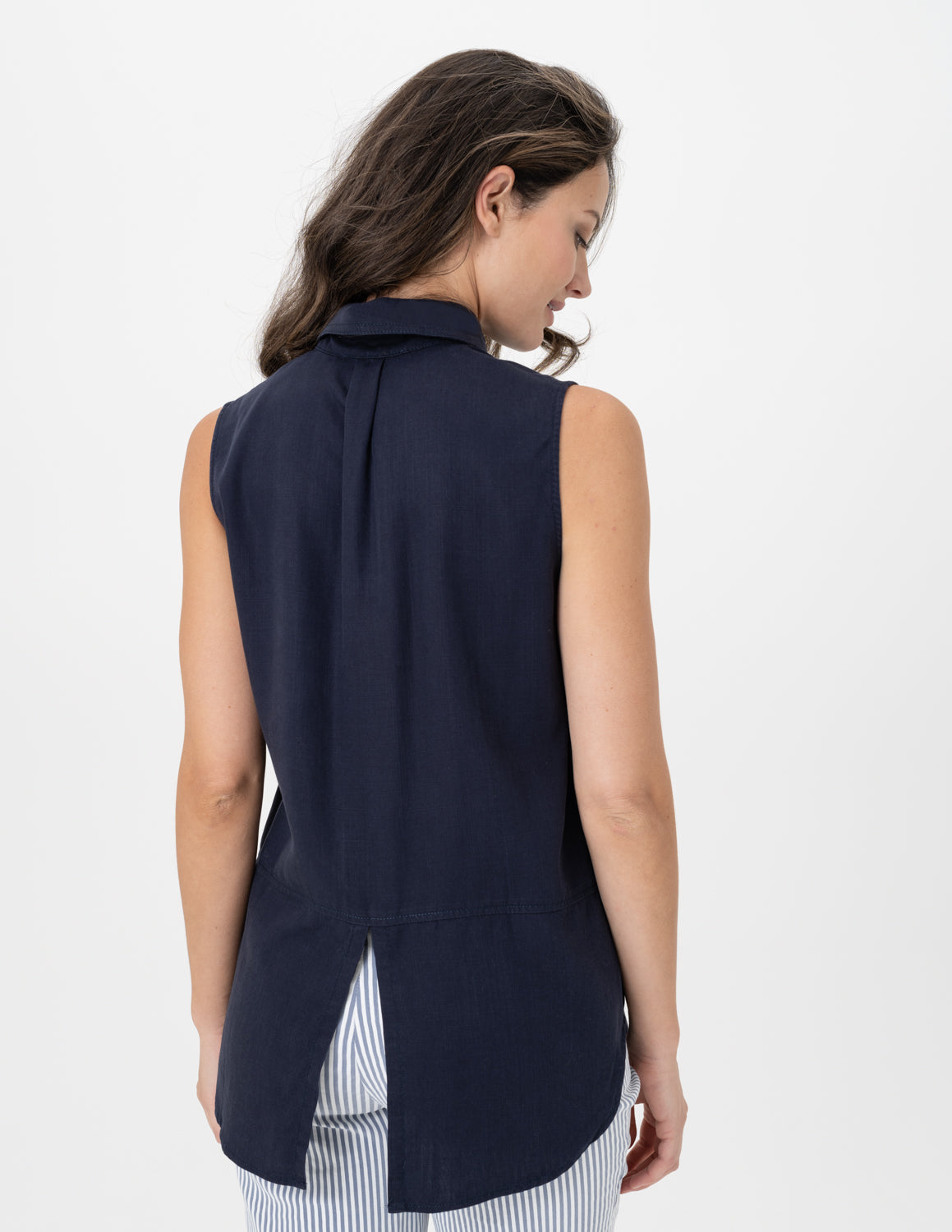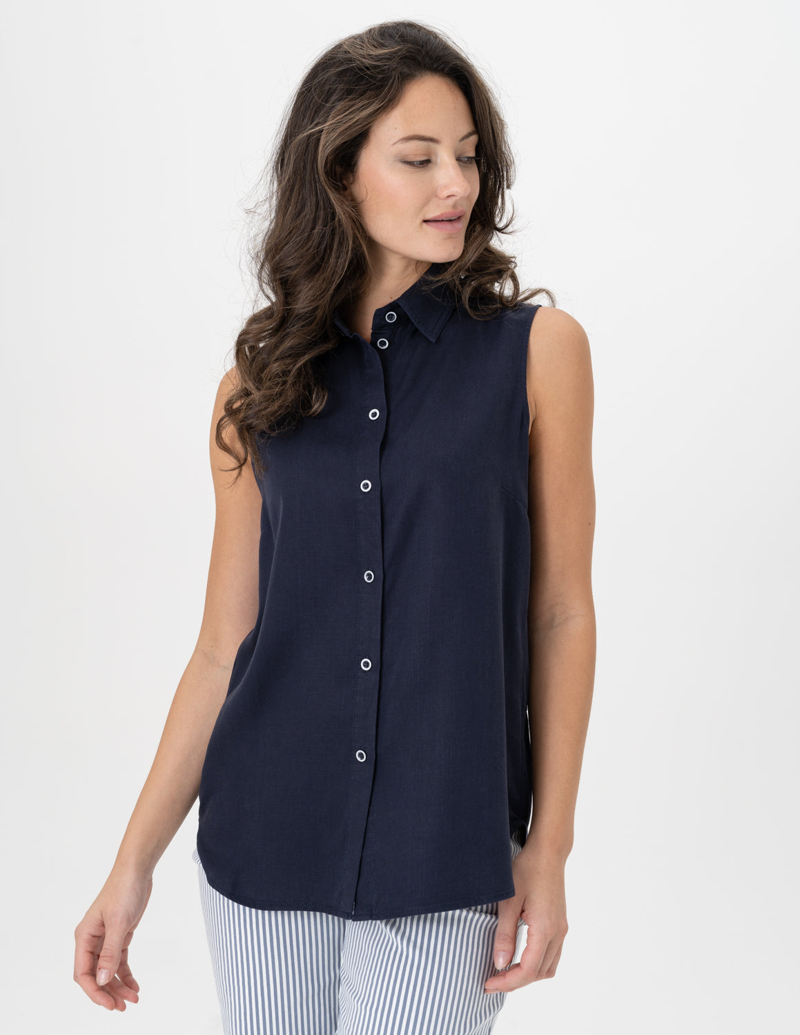 Elevate your wardrobe with the Renuar Indigo Button Up Blouse. Crafted from Tencel fabric, this stylish piece is lightweight and breathable, perfect for a subtle yet sophisticated look. The button-down top is designed to flatter any figure. Upgrade your style with this timeless classic.