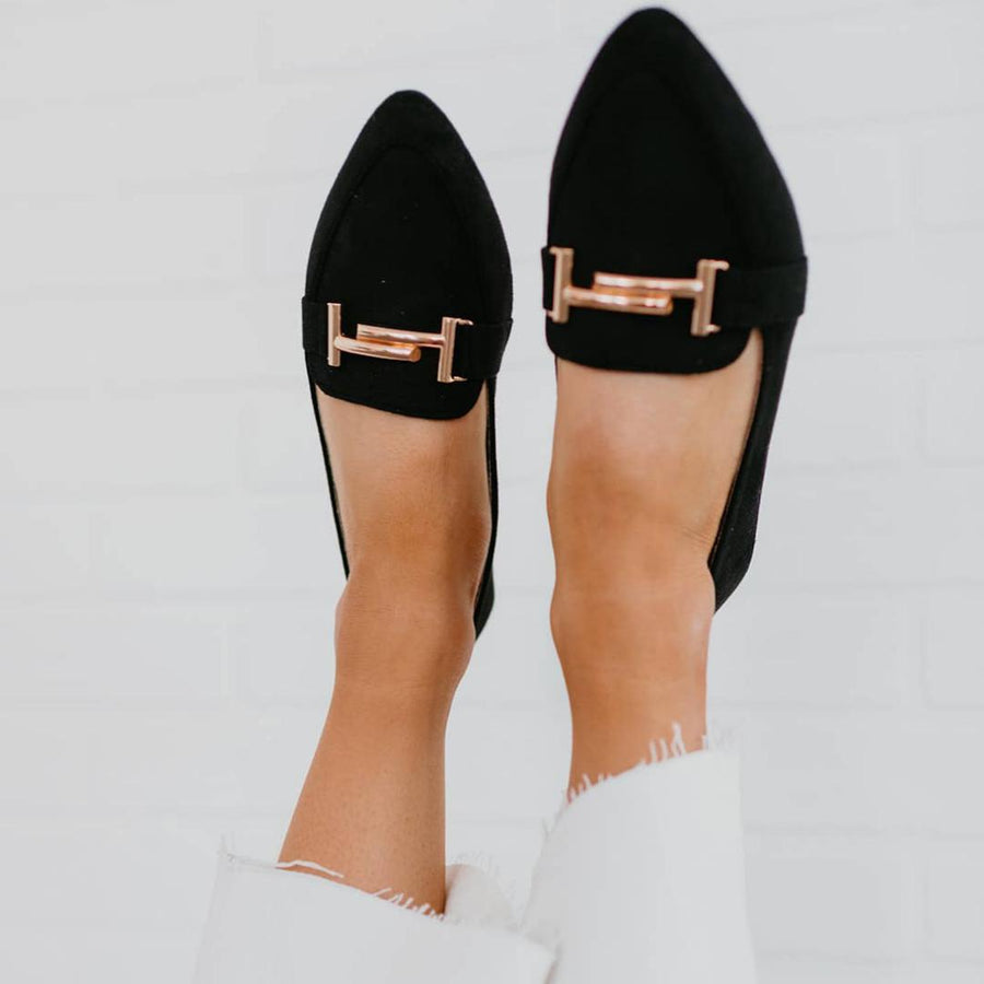 This will be your favorite pair of shoes! This black loafer with gold buckle looks extremely chic! Pair this with your favorite pants for work, a night out or any occassion!