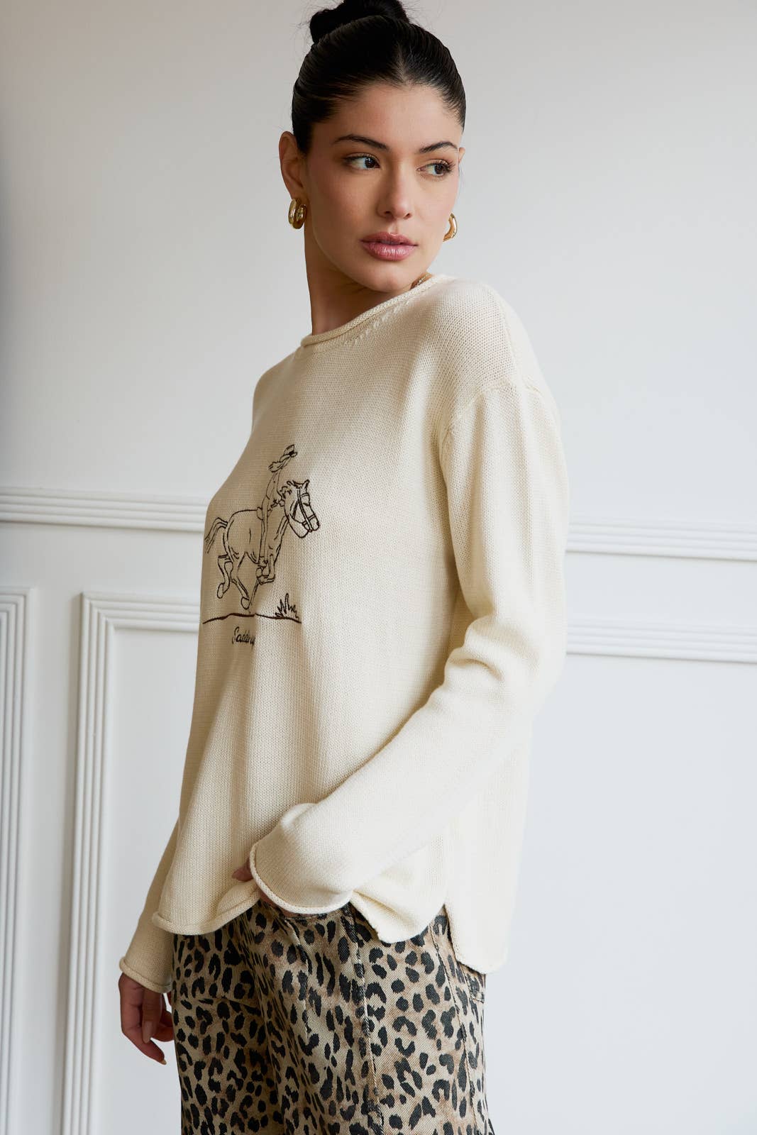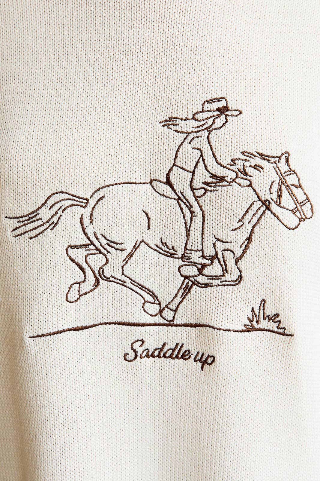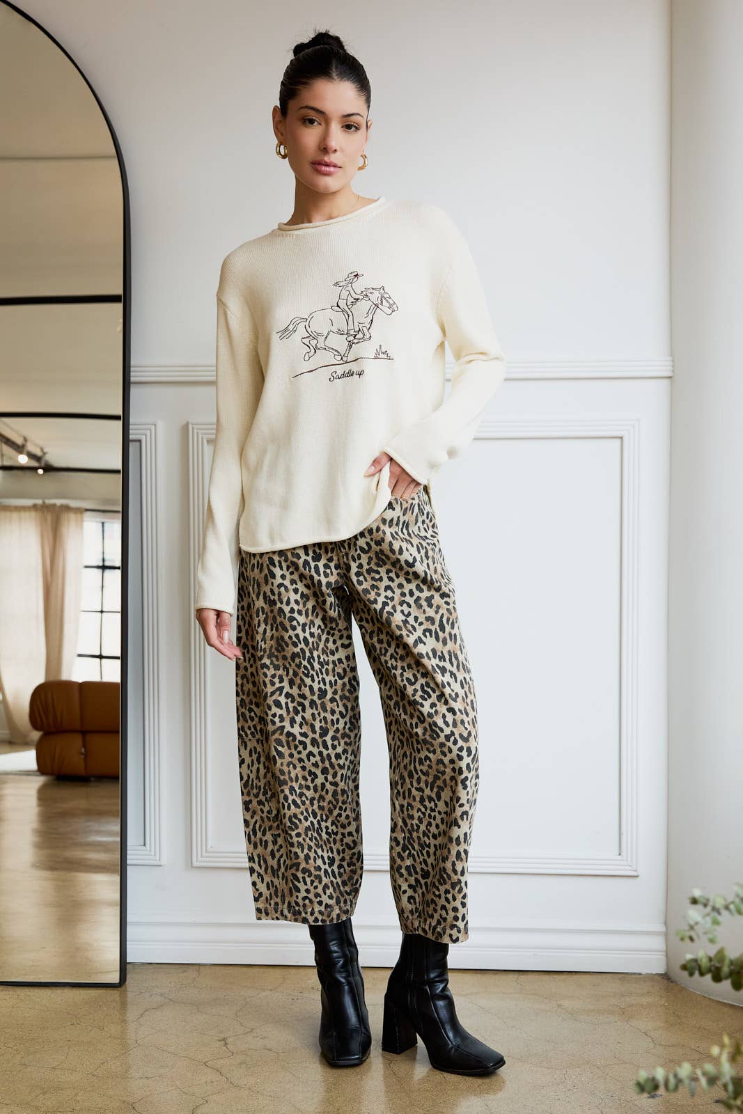 Add a touch of western flair to your fall wardrobe with the Sunday Edition "Saddle Up" graphic sweater.